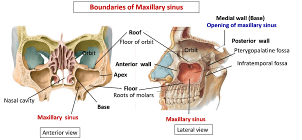 • Base- nasal surface of maxilla. • Roof-orbital surface of maxilla.