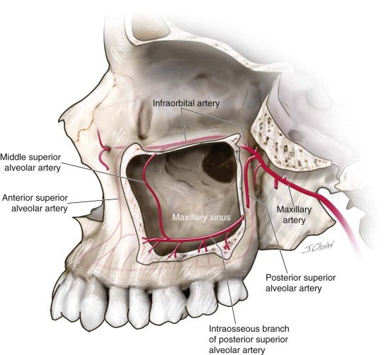 • Posterior wall is pierced by post. Superior alveolar nerve and vessels.