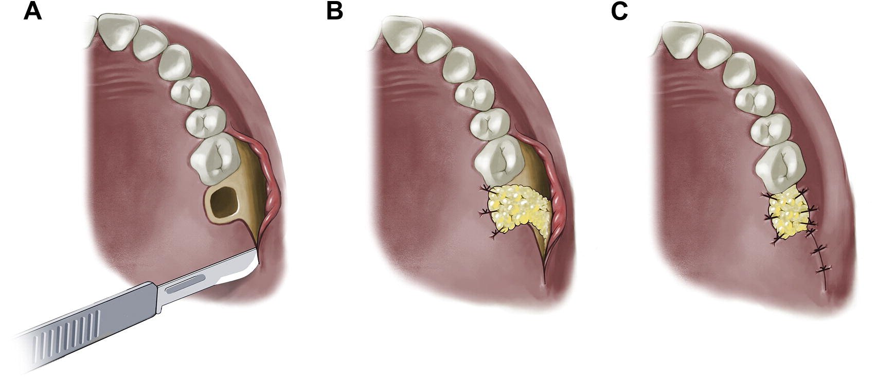 1. Buccal flap. 2. Palatel flap. 3. Or combination.