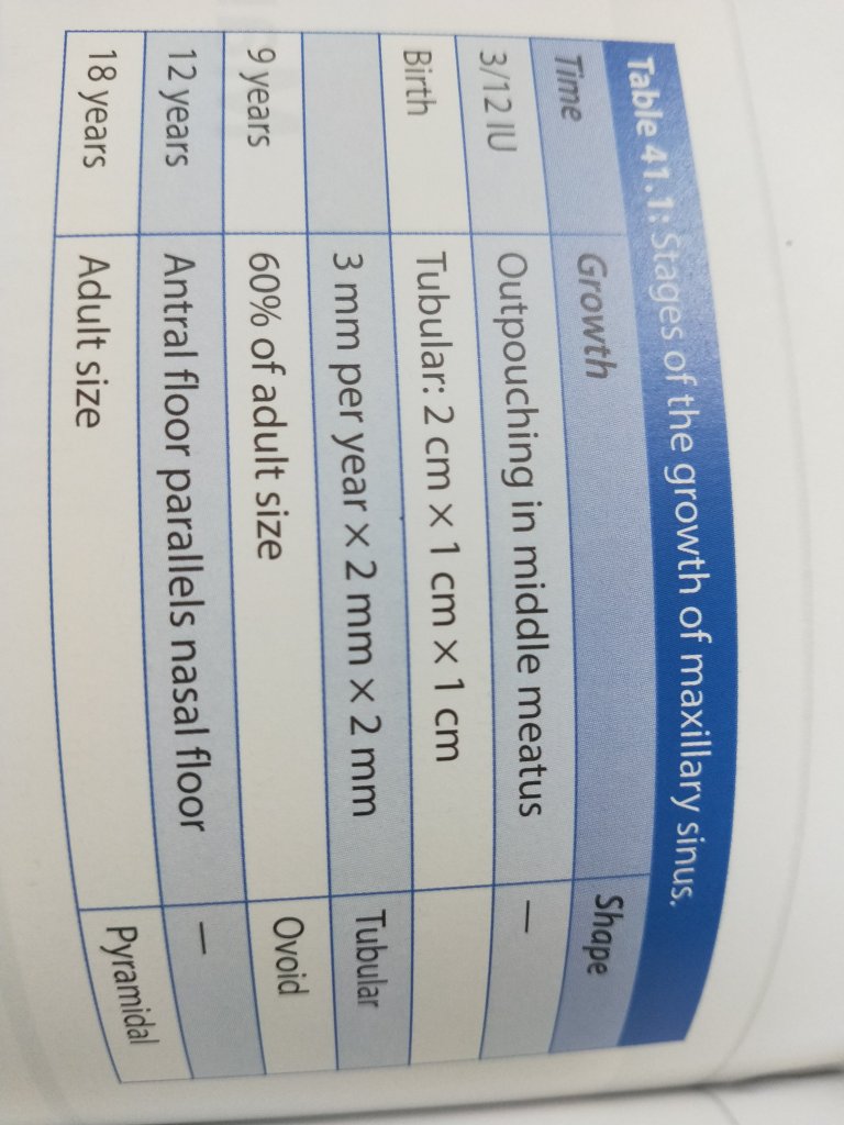 In early stages, maxillary sinus is high in maxilla. Later gradually grows downward, by a process of pneumatization . The expansion of the sinuses normally ceases after eruption of permanent teeth. However, occasionally, the sinuses pneumatize further, after removal of one or more of maxillary posterior teeth, and extend into the residual alveolar process. In adults, the apices of the posterior teeth may extend into the sinus cavity.